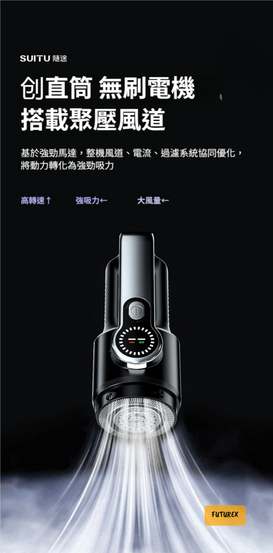 - 17000Pa超強吸力,採用旋風式無刷電機,清潔力爆棚
