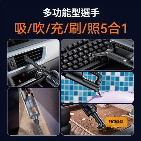 - 5合1多功能設計:吸塵、吹風、充電、刷洗、照明一次滿足