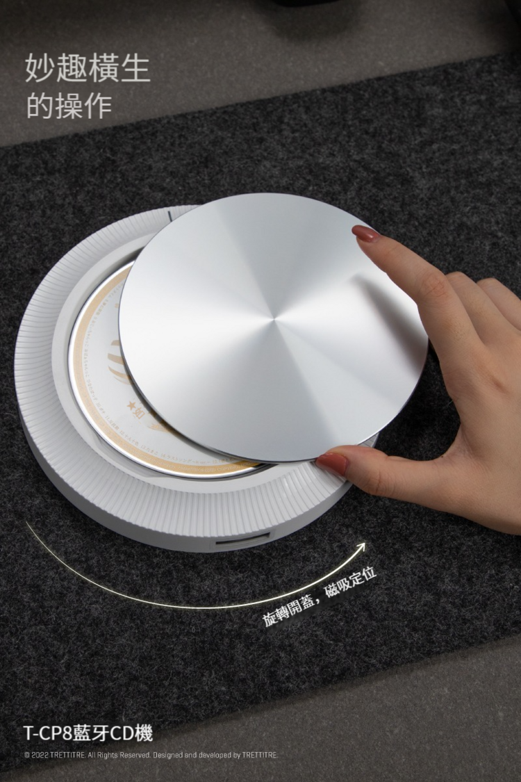 • 旋轉式開蓋設計,磁吸定位,方便擺放CD