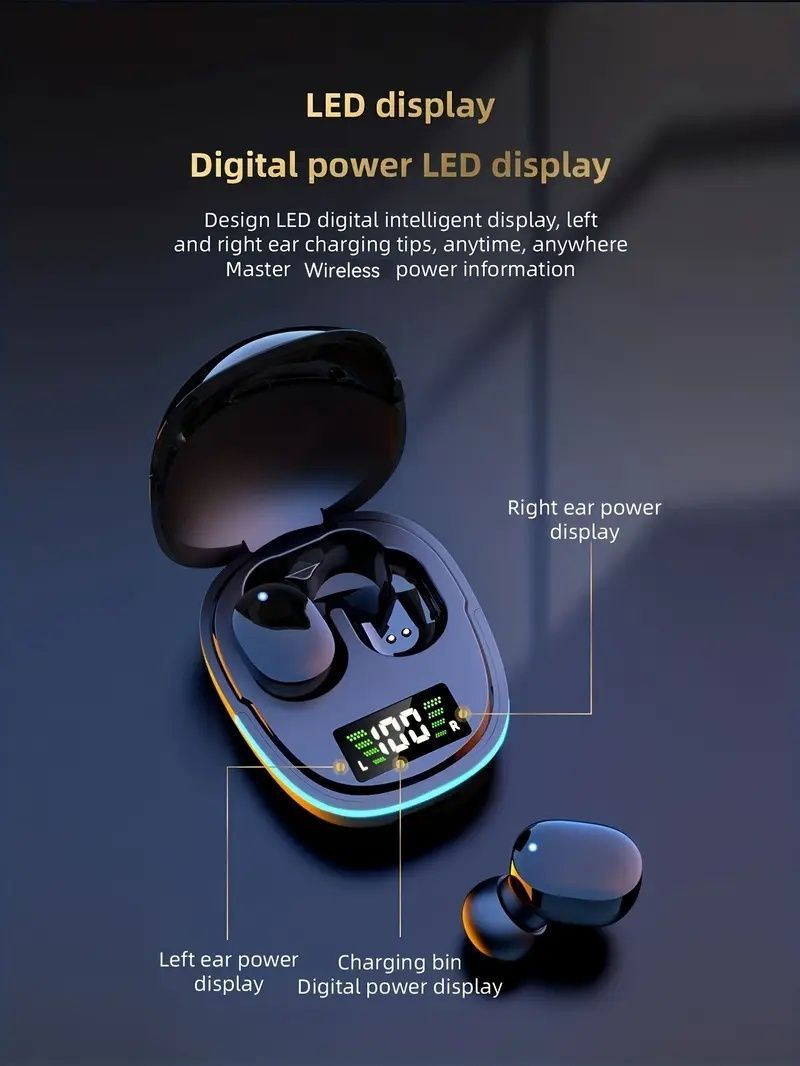 日本暢銷-無線耳機,帶 LED 顯示器、觸控、遊戲和運動用入耳式 TWS 設計,相容於 iOS/Android - 包含時尚金屬充電盒,耳機無線