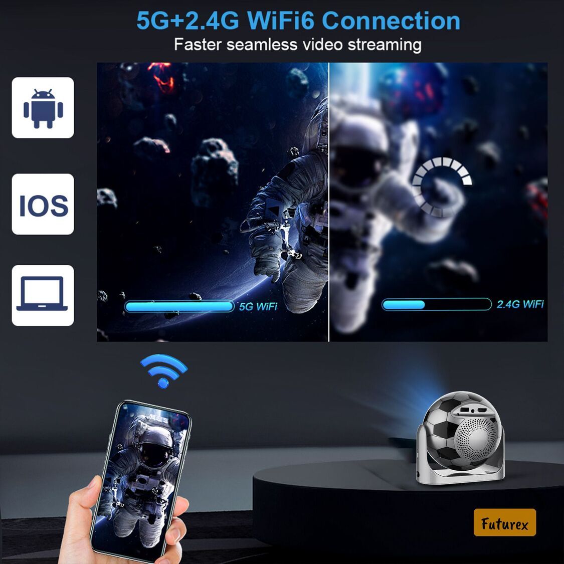 - WiFi6雙頻(2.4G+5G)連接,串流更快更穩定