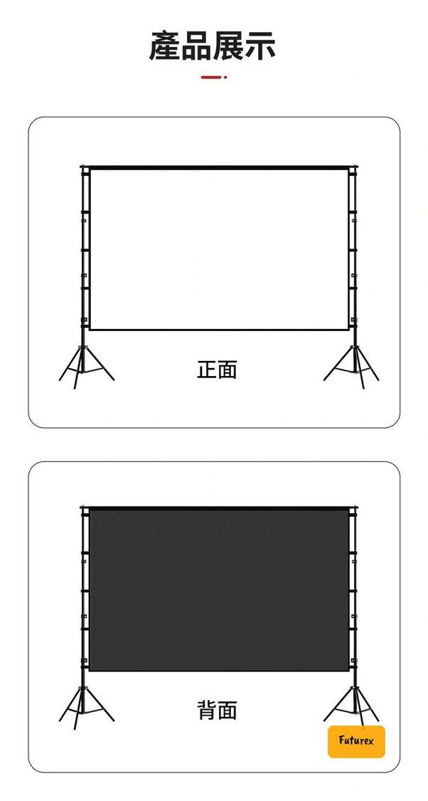 - 尺寸選擇:84吋(186x105cm)、100吋(221x125cm)、120吋(265x150cm)、150吋(330x187cm)