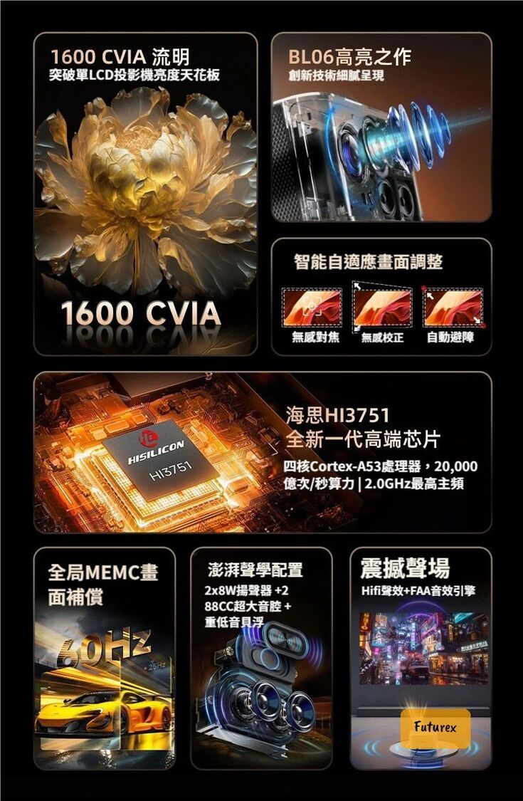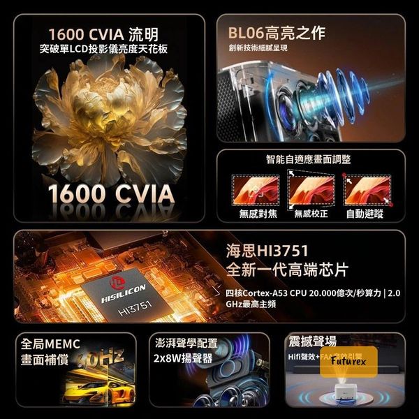 - 1600CVIA流明,亮度比同類產品高20%