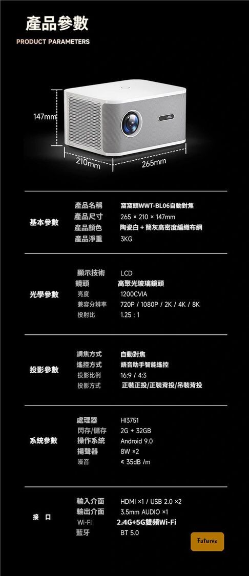- 尺寸: 265×210×147mm