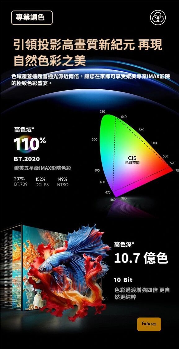 - 10.7億色(10-bit)顯示,色彩過渡自然