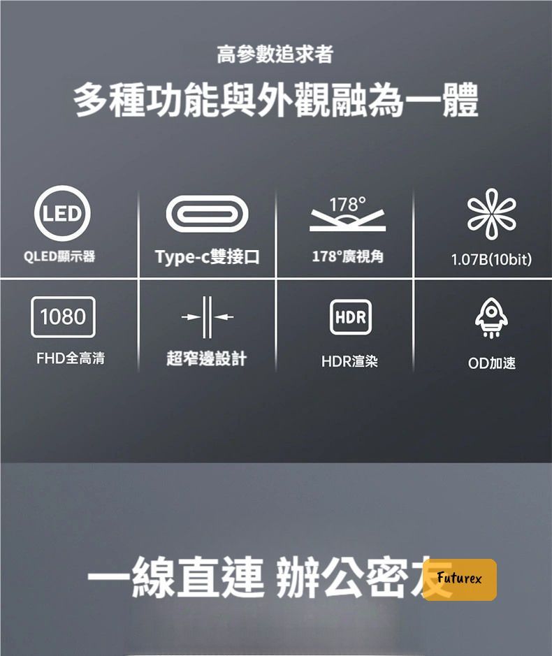 - 1080P全高清解像度,100% sRGB色域準到爆