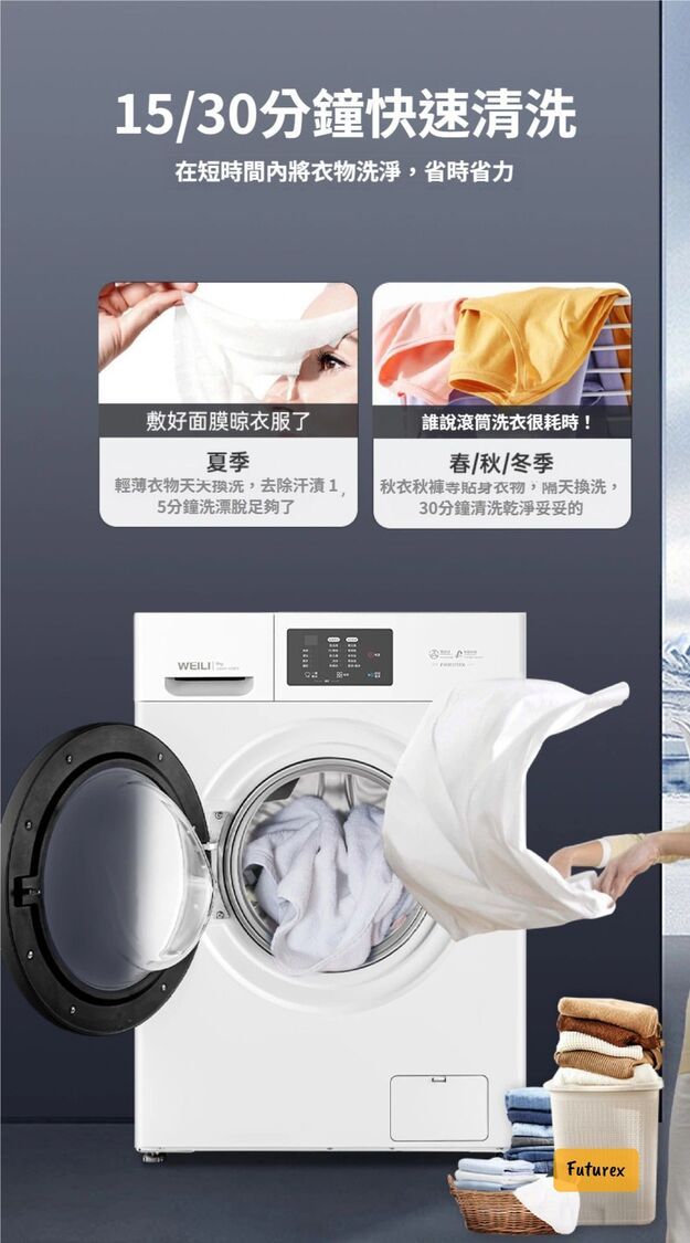 • 日常快洗輕便衣物,週末大清洗床單被套