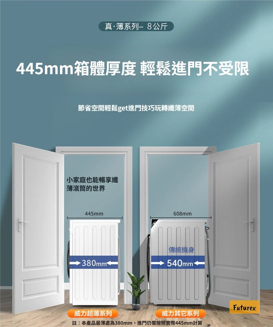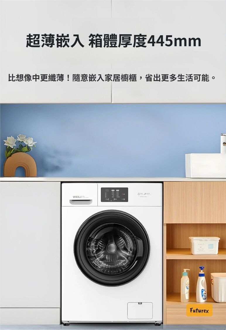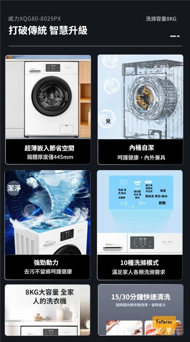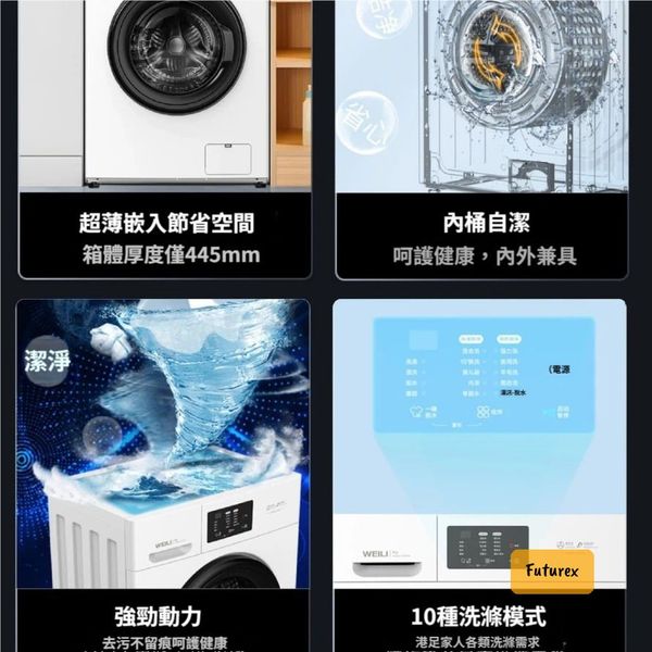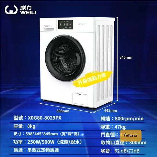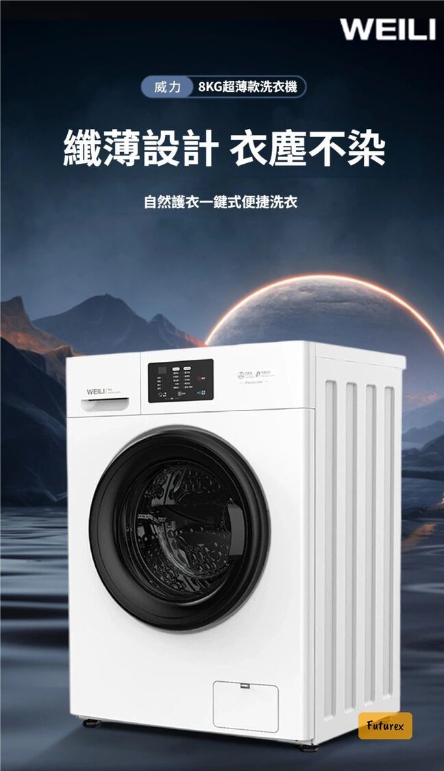 全城熱賣-威力8KG超薄洗衣機|445mm纖薄機身|內筒自潔|10種洗衣模式