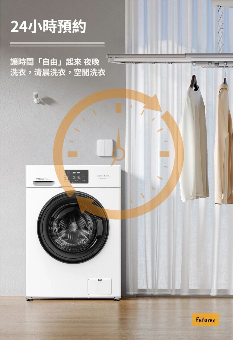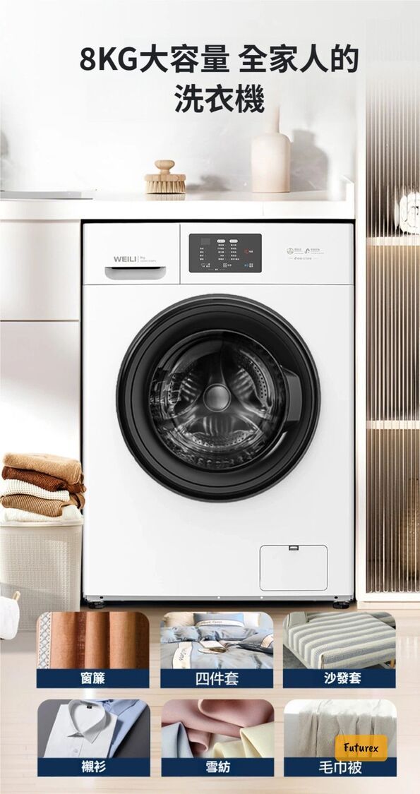 • 8KG大容量,一次過洗晒全家衫,連窗簾被套都無問題