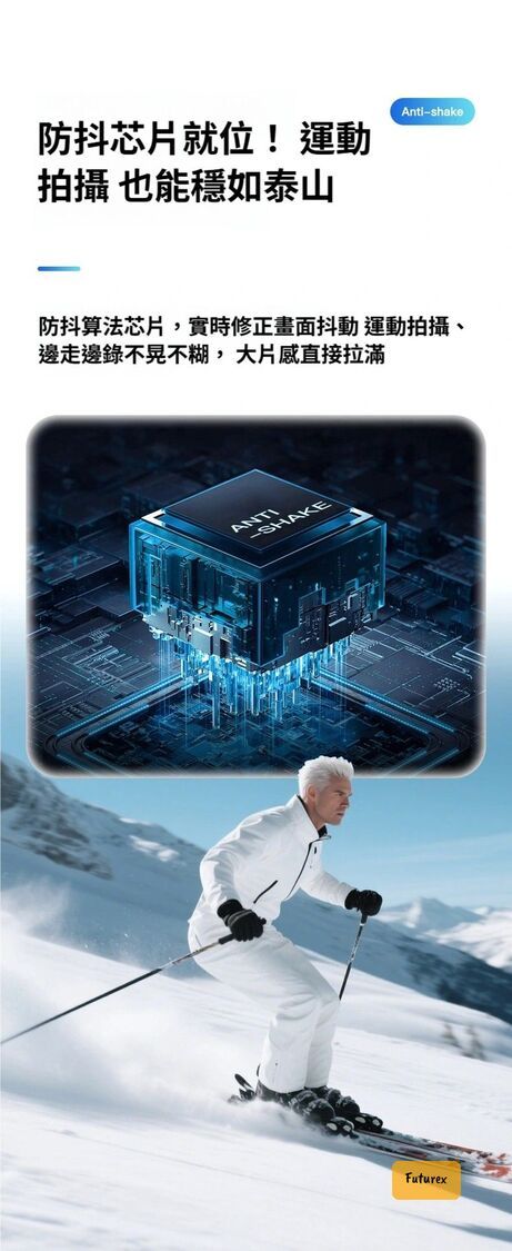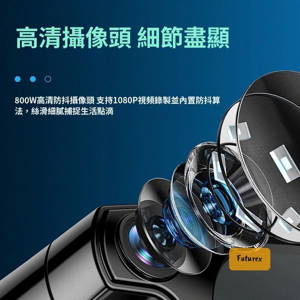 - 800萬像素高清鏡頭配防震芯片,1080P錄影唔怕震。