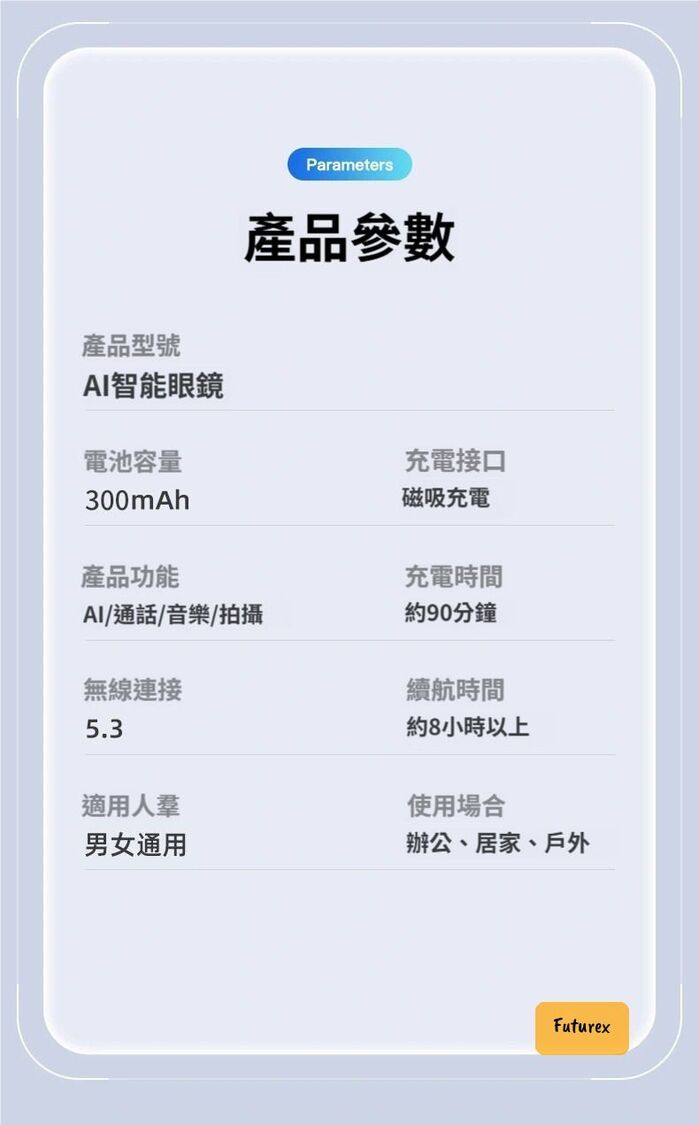 - 智能感應:摘下眼鏡自動休眠,續航更持久。