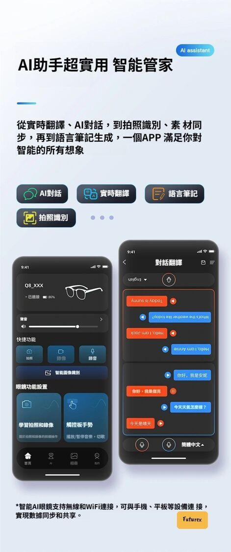 - 智能感應:摘下眼鏡自動休眠,續航更持久。