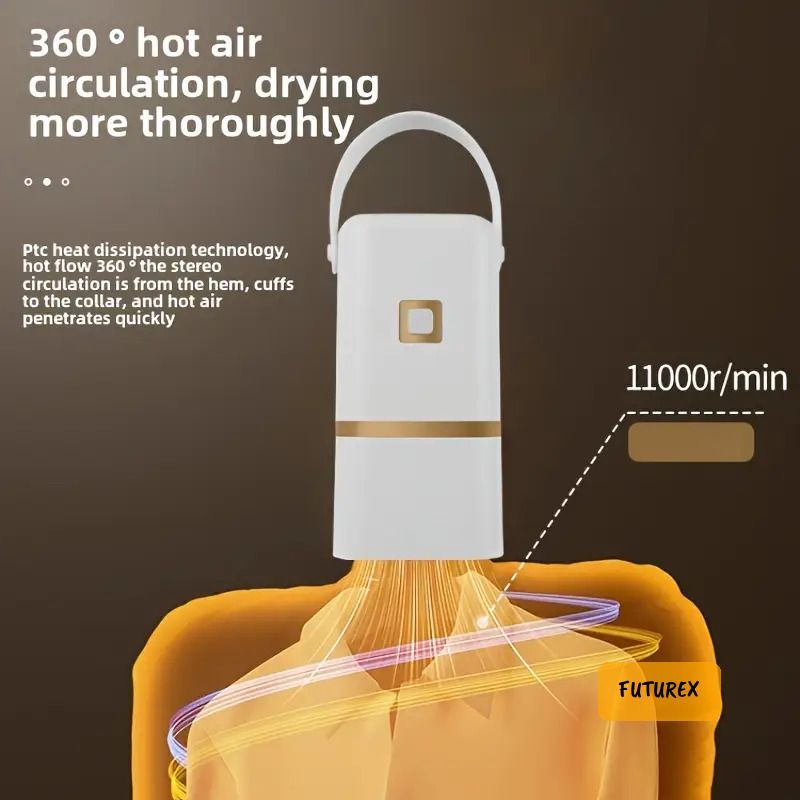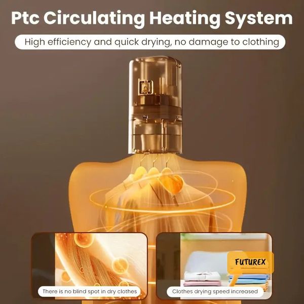 • 360°熱風循環:PTC發熱系統,由衫腳到衣領均勻烘乾