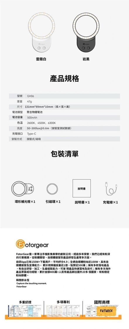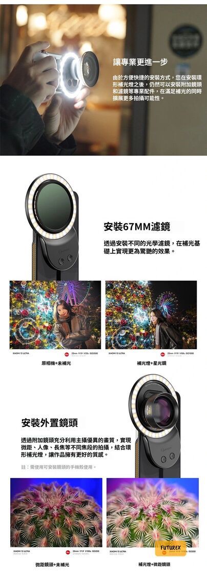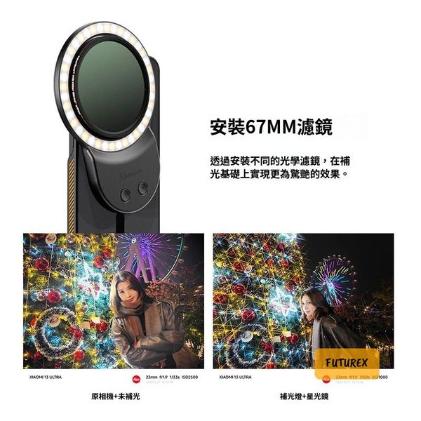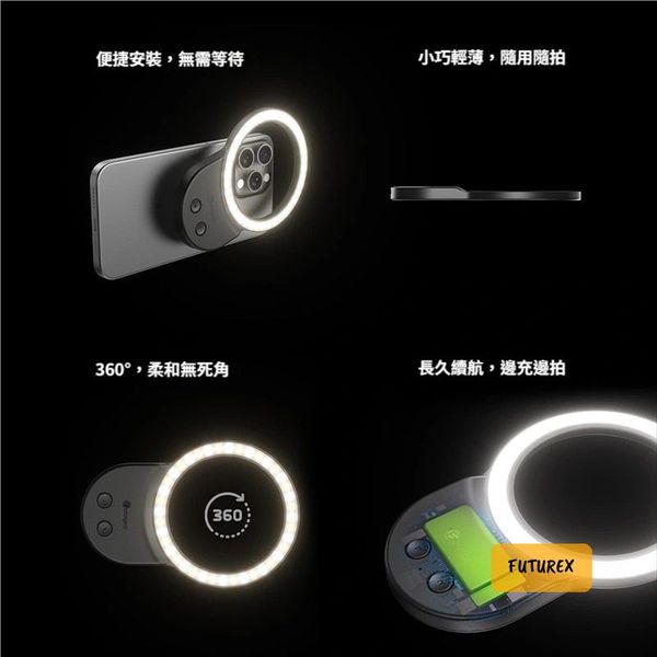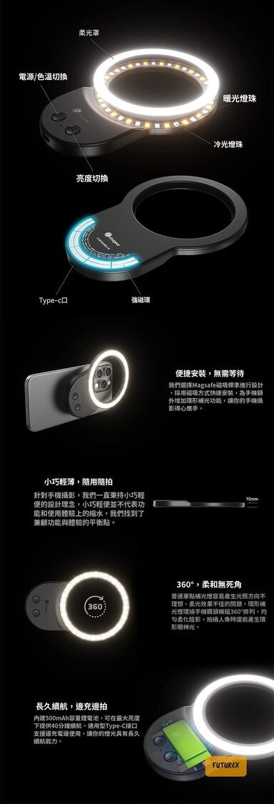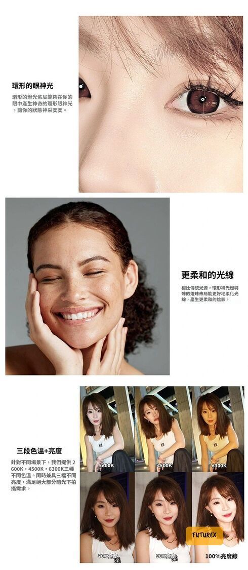 - 360°環形柔光,打造迷人環形眼神光