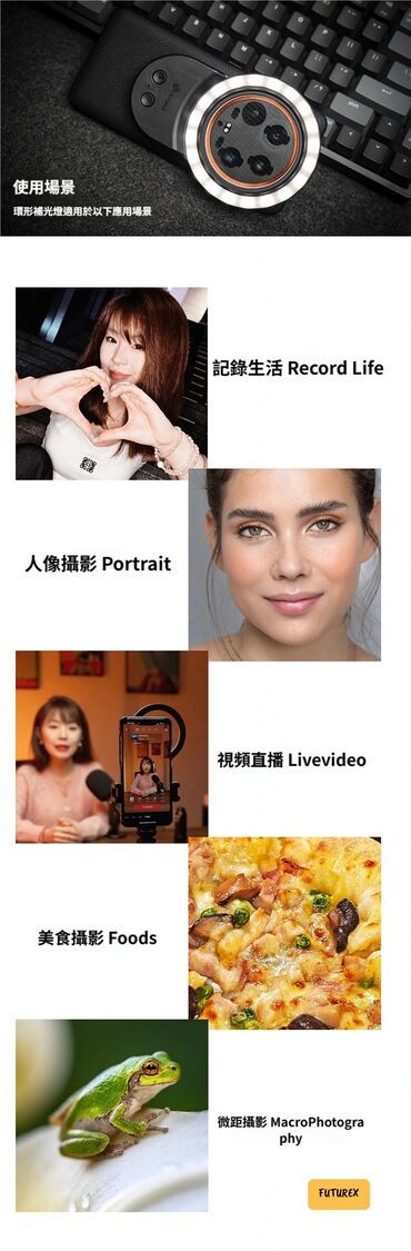 自拍、直播、人像攝影、美食拍攝、微距攝影、生活記錄都得!暗光環境下拍攝效果特別顯著,膚色還原準確,雜訊少。