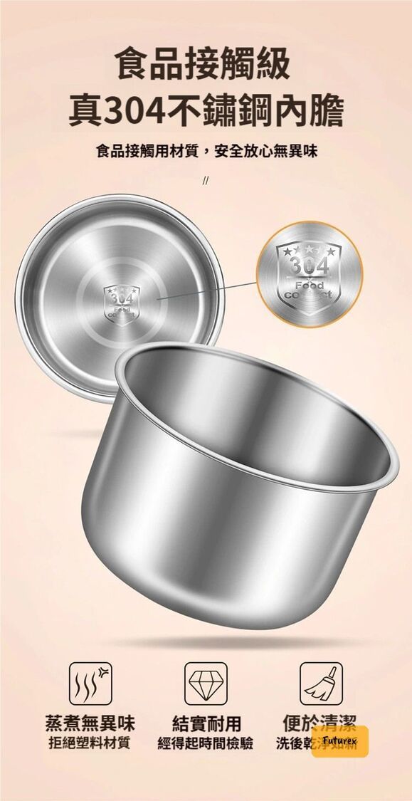 - 採用食品級304不鏽鋼內膽,實淨耐用又冇異味