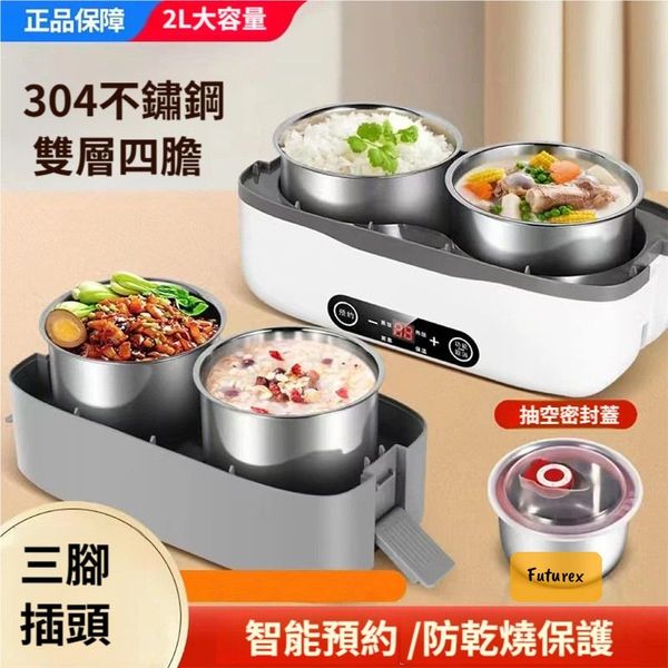 日本暢銷-2升304不鏽鋼電熱飯盒|24小時智能預約|雙層四膽設計|抽空保鮮