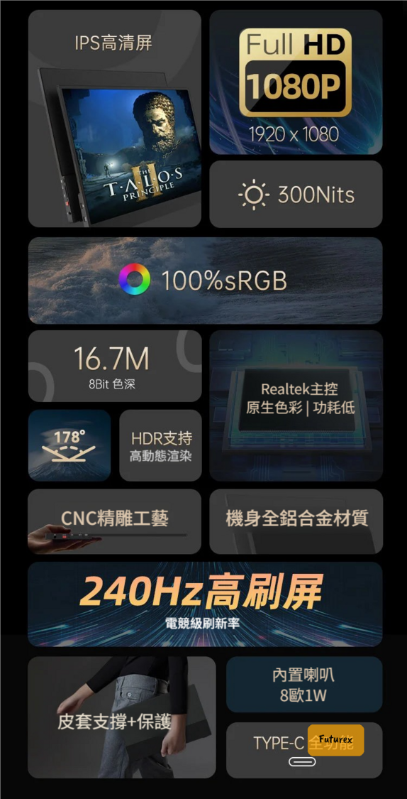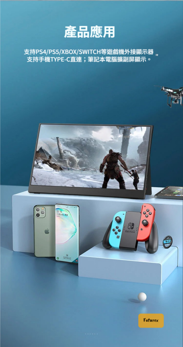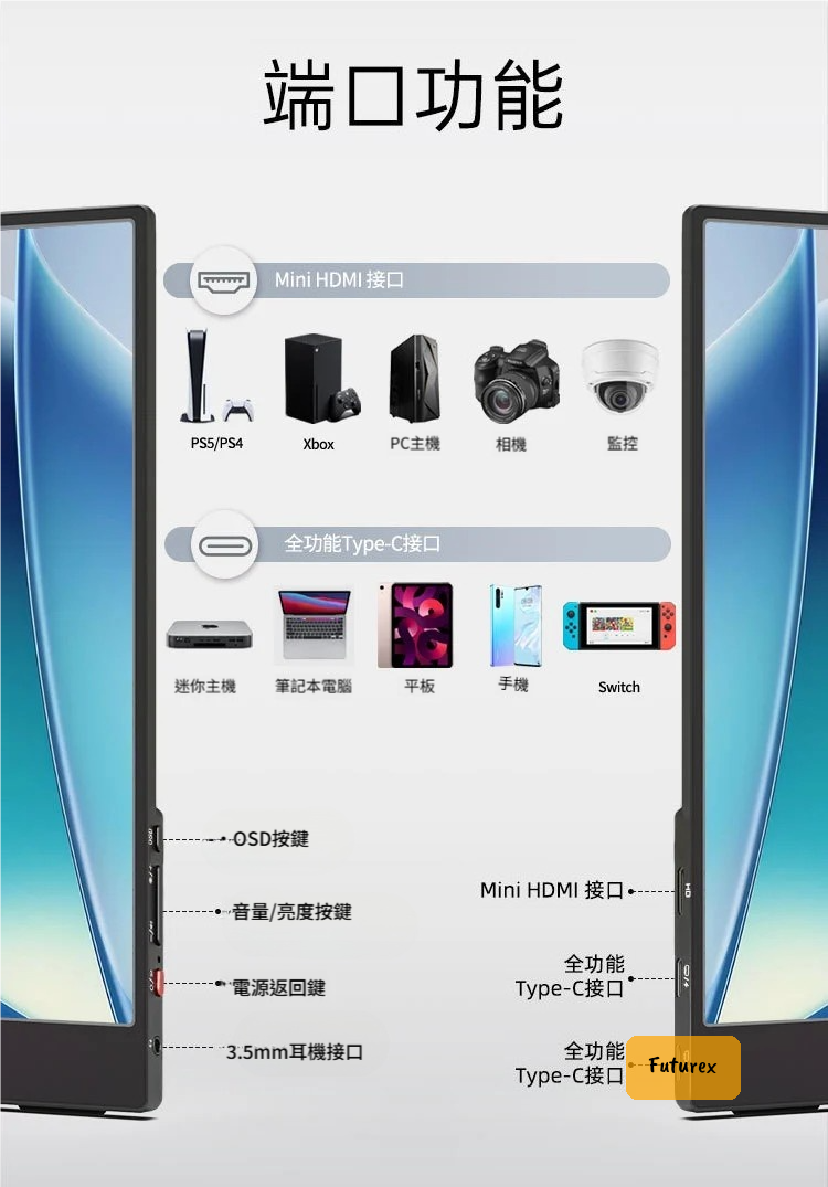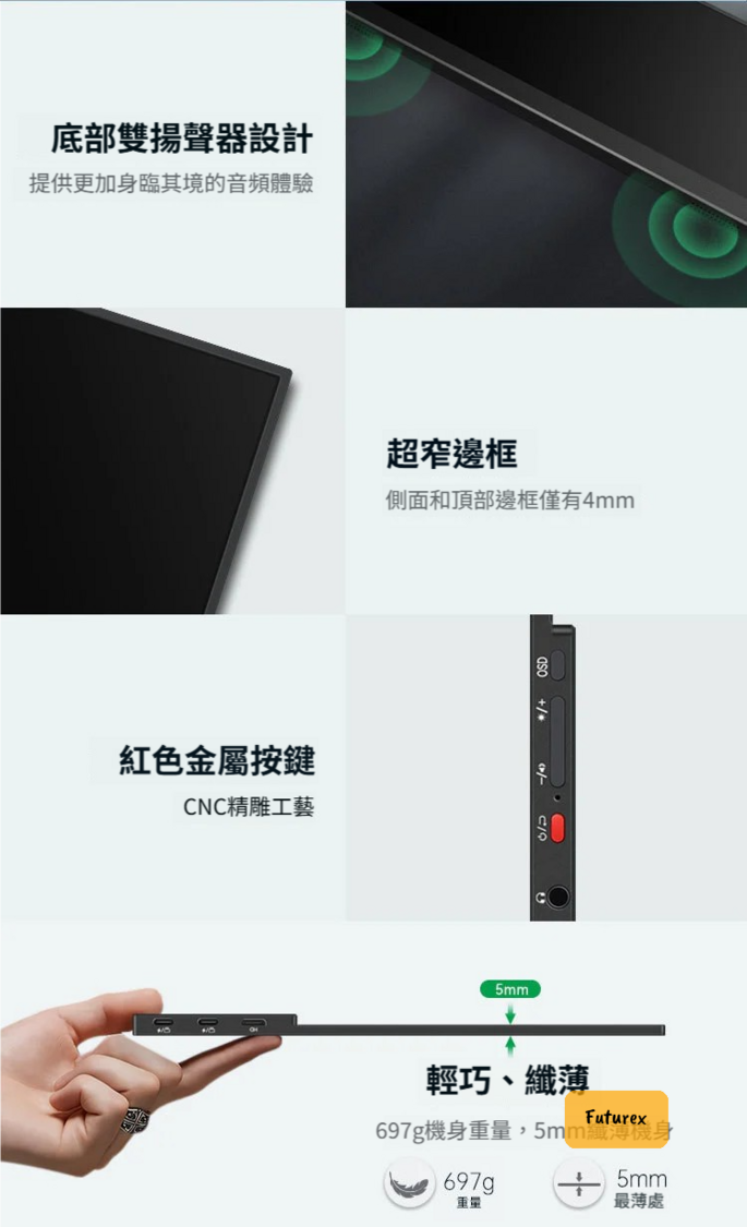 - 做筆記本或平板副屏,擴展工作或娛樂空間,USB-C或HDMI即插即用。