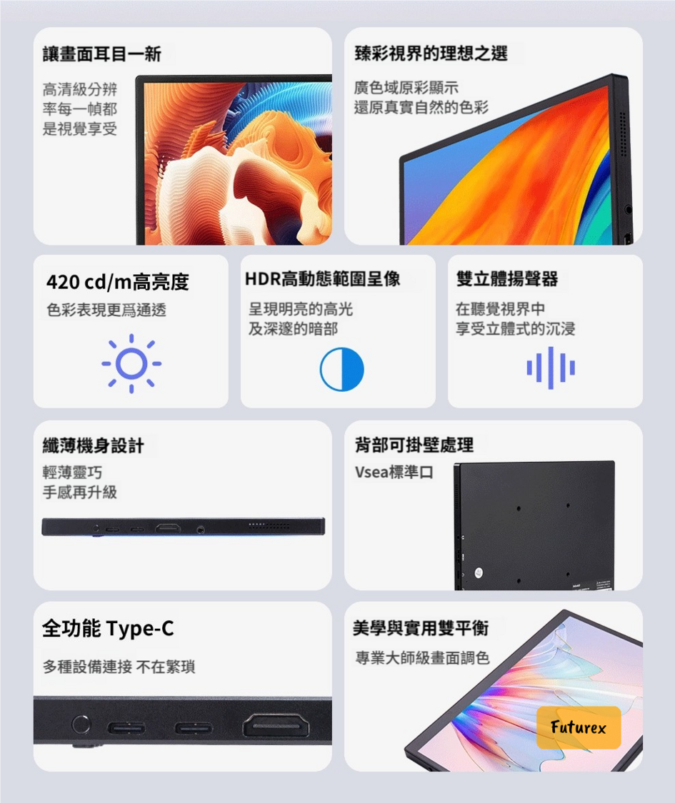 - 創作:色彩準確,適合攝影、設計等專業用途,還原真實細節。