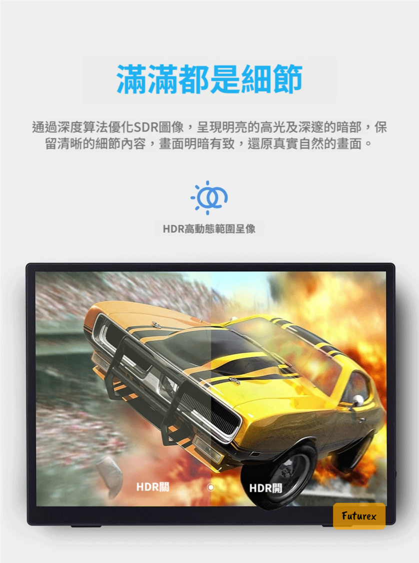 - HDR功能增強動態範圍,光暗細節分明,畫面更逼真,睇戲打機更投入。