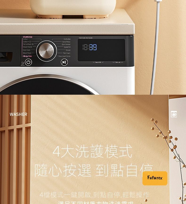 - 4大模式:標準/快洗/柔洗/強力洗,時間到自動停