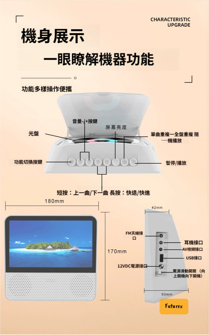 日本暢銷-高清DVD播放機|藍牙5.1|7寸顯示屏|雙喇叭|三洋機芯
