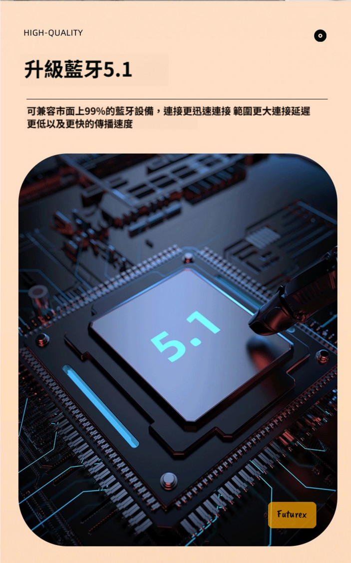 - 藍牙5.1模組,連接快兼容99%裝置