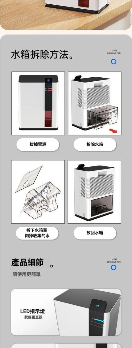 3L高容量水箱: 水箱水滿時會自動停機,並亮起紅燈提醒您倒水。