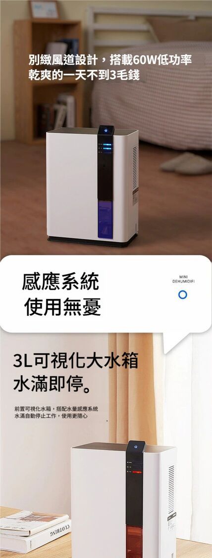 全城熱賣-智慧型家用抽濕機 除濕乾衣機 小型除濕 防潮抽濕機 吸濕器 3L水箱 香港三腳插头