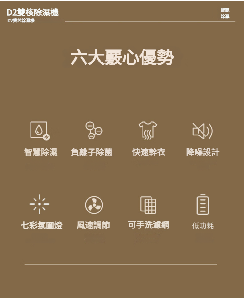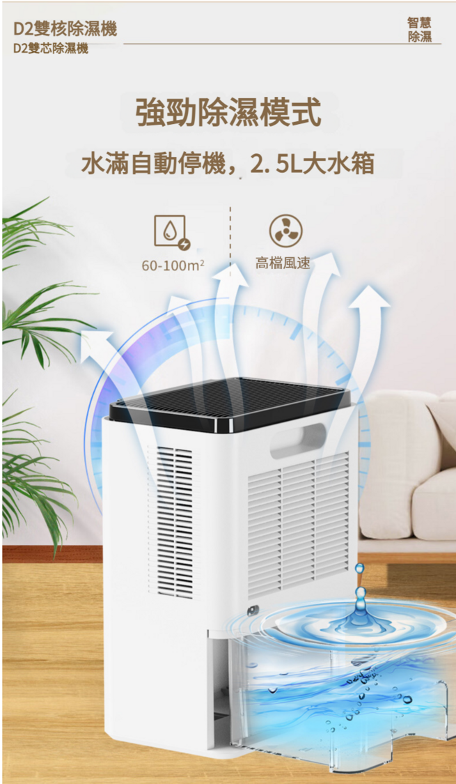 雙核心冷凍技術/智慧恆濕/LED顯示/兩檔除濕模式/自動低溫化霜功能/ 一鍵靜音睡眠/隱藏式背後抽拉水箱/七彩氣氛夜燈/2500毫升水箱容量/ 定時設定除濕/水滿自動停機 產品尺寸:285*200*140mm 適用面積:20~100㎡ 產品重量:2.7KG 水箱容量:2500ML 注意事項 收到除濕機,建議靜止4小時候使用。
