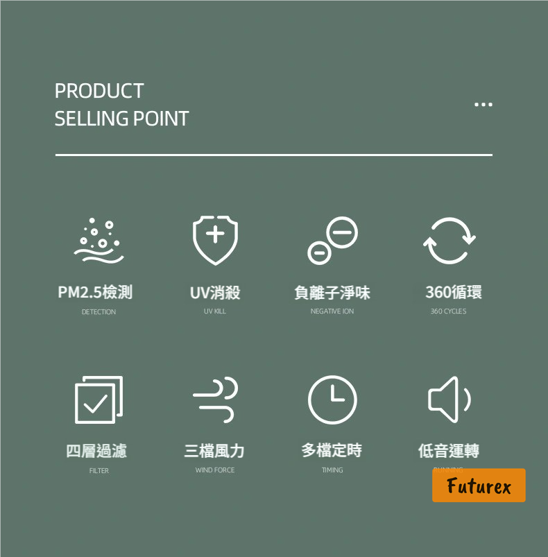 - 360°立體風循環,淨化空氣遍佈全屋每個角落。