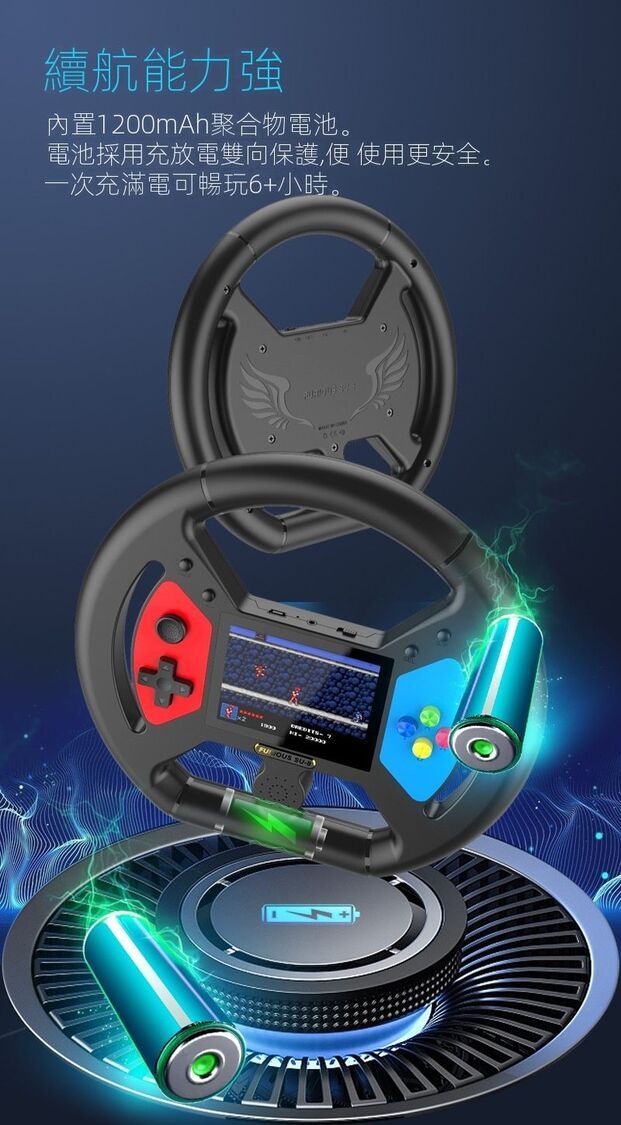 - 1200mAh聚合物電池,充滿玩到6個鐘以上