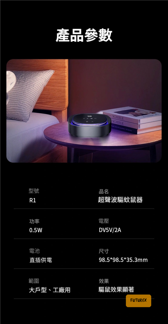 FUTUREX-R1 變頻超音波驅鼠器|驅蟲器|驅蚊器|變頻震蕩波|人寵無害|慳位設計