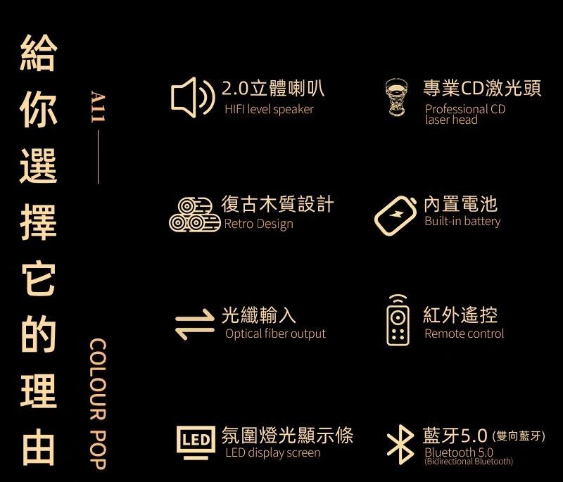 這款CD機音響一體機融合了經典CD播放與現代音響技術,打造出高品質的音樂享受,並支持多種連接方式,滿足您的多元需求。具有以下特點: