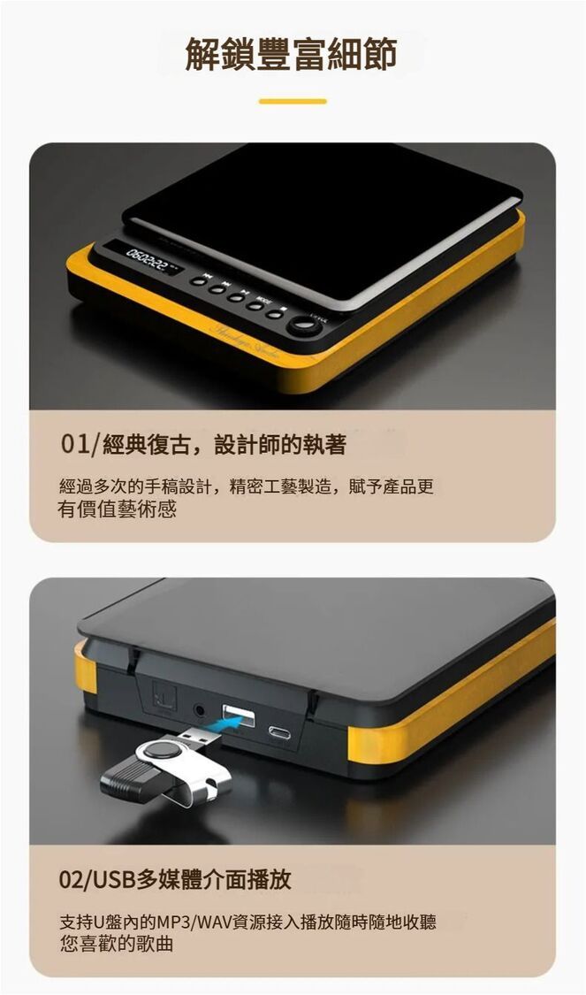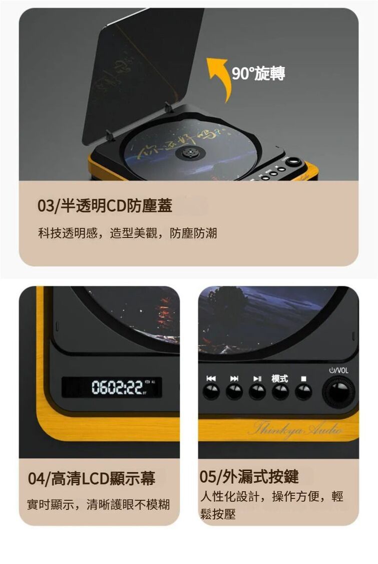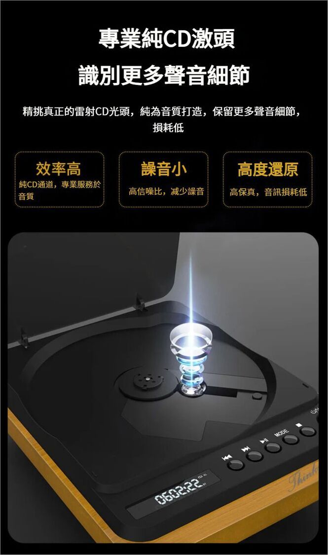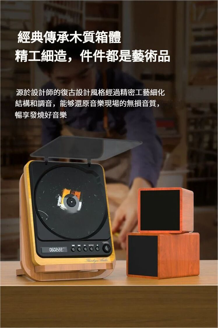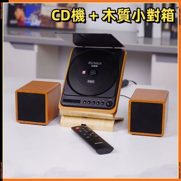 全城熱賣-Thinkya - 充電便攜式 CD 播放機 附一對木質音箱 | CD機,帶藍牙輸出,CD播放器,專輯無損黑膠CD Player DVP-558