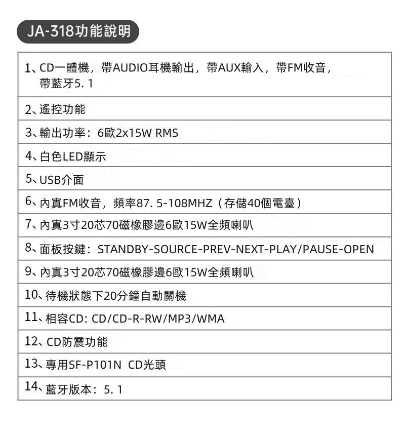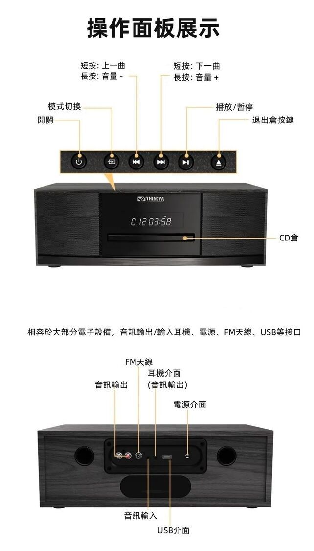 兼容多種CD格式:支持多種常見CD格式,包括音頻CD、MP3-CD等,帶給您多樣化的音樂選擇。
