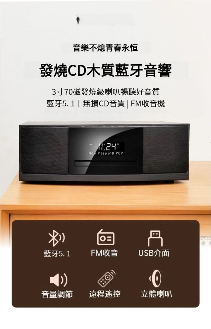 精緻木質音響:採用優質木質外殼,具有良好的聲學特性,有效減少雜音和震動,提供更加自然、清澈的音質。