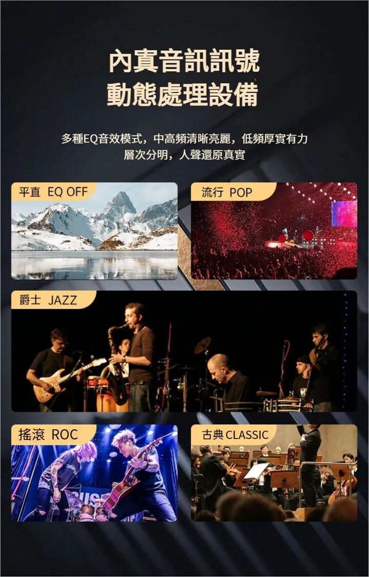 多種EQ音效模式:支持多種預設EQ音效模式,可以根據不同的音樂類型調節音質,帶來不同的聽覺享受,滿足您的個性化需求。