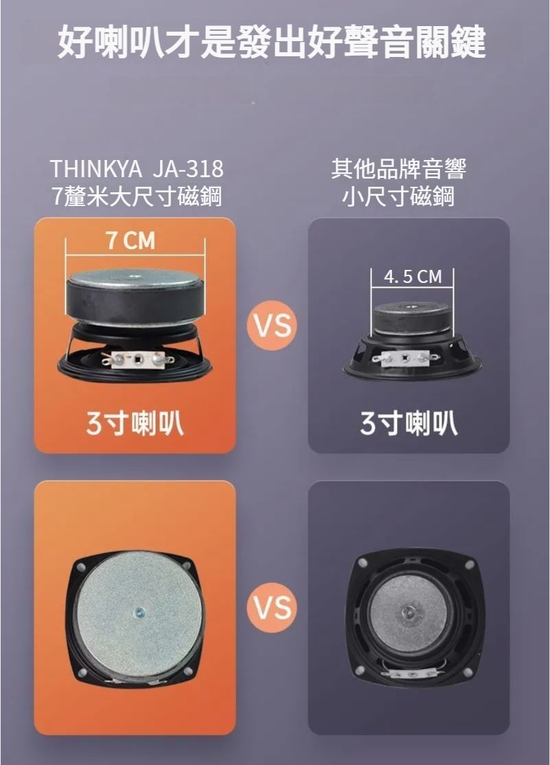 2個3寸20芯喇叭:搭載2個高性能3寸20芯喇叭,提供更強勁的音效輸出,豐富的低頻和清晰的高頻,呈現出層次感十足的音響效果。