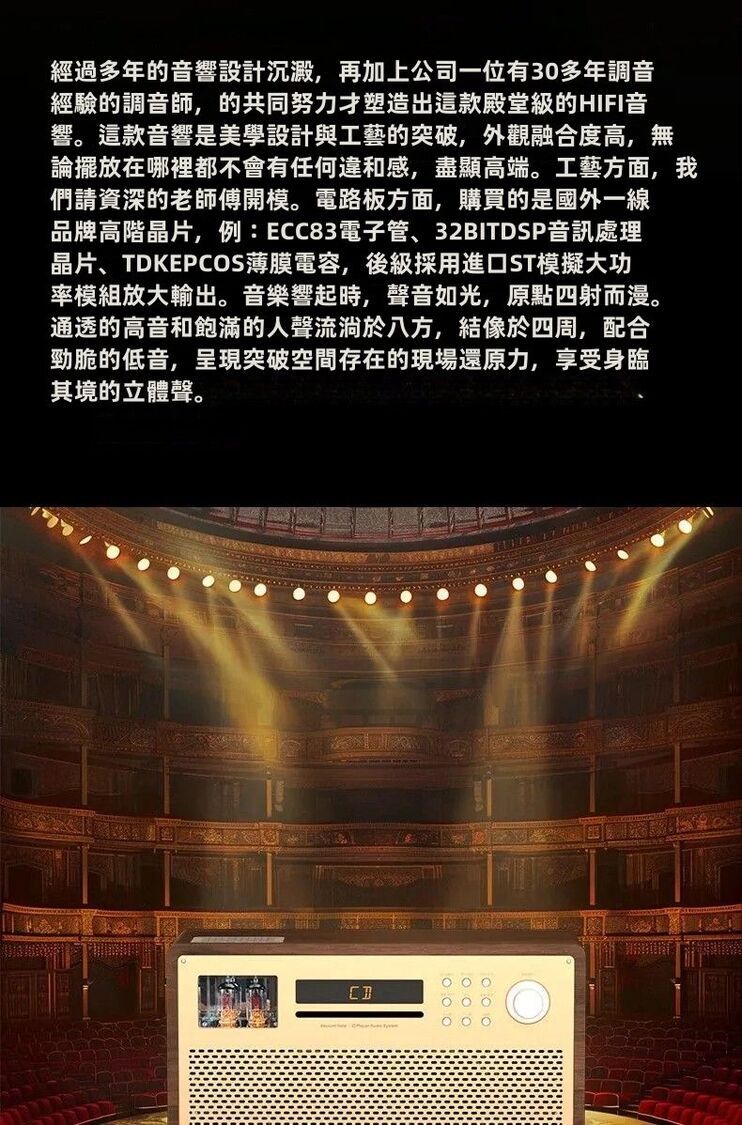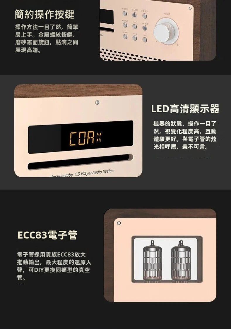 這款前膽後石播放器採用高品質木質箱體,結合專業電子管潤飾技術,為您帶來溫暖、細膩的音質表現。精細的工藝設計和高保真學設計確保音質純淨,音頻細節豐富。 HIFI左右音腔獨立設計,帶來更精準的音場分佈,呈現深沉而層次分明的音效體驗。