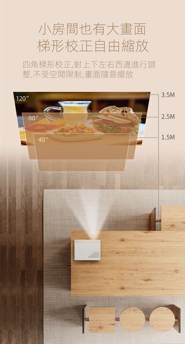 5. 梯形校正:自動垂直梯形校正(±40°)