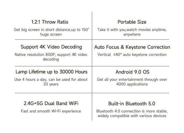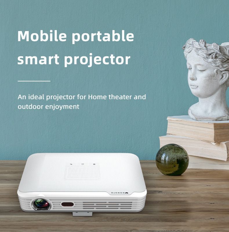 全城熱賣-WOWOTO 高畫質充電DLP智慧投影機, 自動對焦, 450 ANSI 流明, 4K投影機, 支援3D影片 T9S