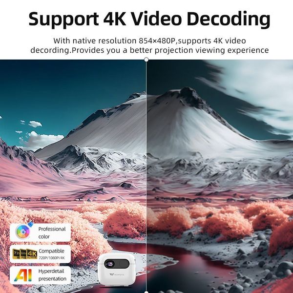 全城熱賣-WOWOTO 可充電DLP迷你4K投影機 便攜式超迷你家用無線口袋智慧投影機 4K 100ANSI 自帶喇叭, 內置電池, Q6Plus