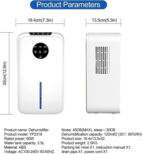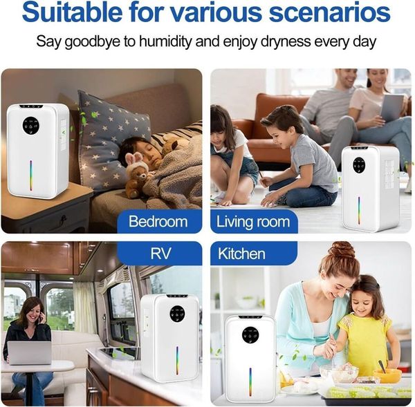全城熱賣-家用除濕機 2.5 公升水箱,附自動關閉功能,便攜式小型除濕機,適用於房間、浴室、臥室、房車、衣櫃 20 平方米,7 種顏色 LED 燈