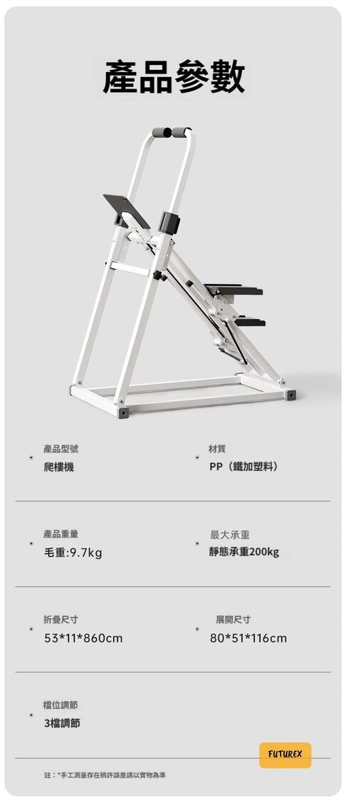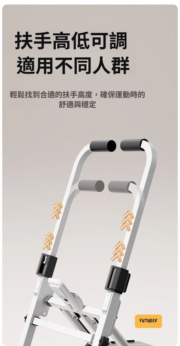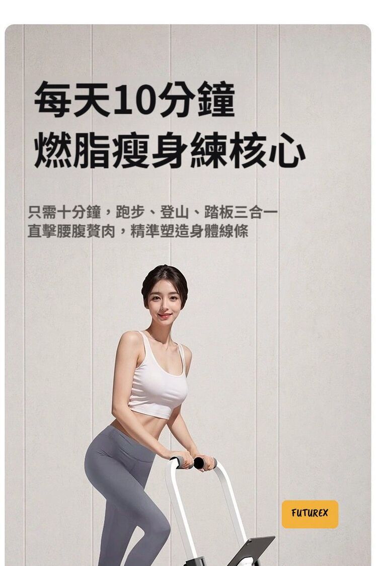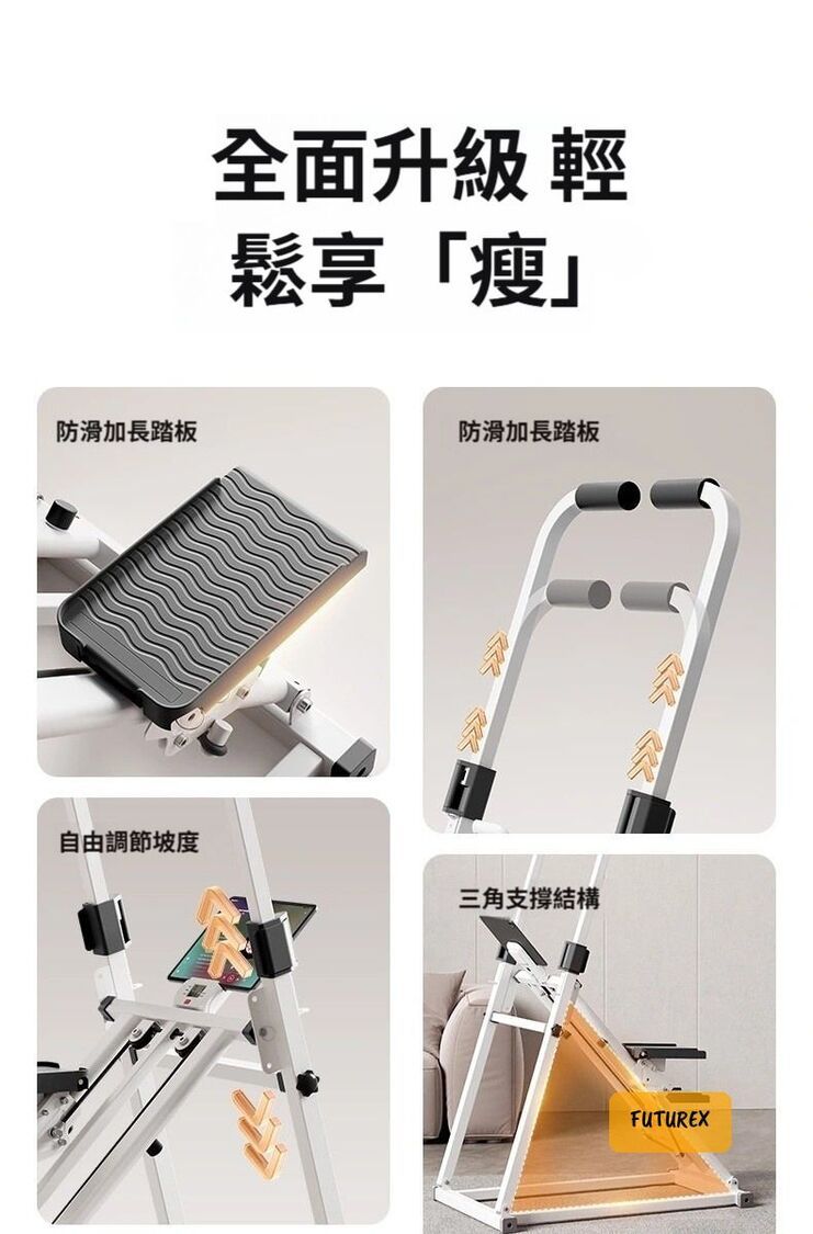 - 三合一多功能設計:爬樓、跑步、踏板運動一機搞定
